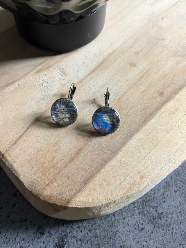 Boucles d'oreilles dormeuses en verre et tissus couleur bronze