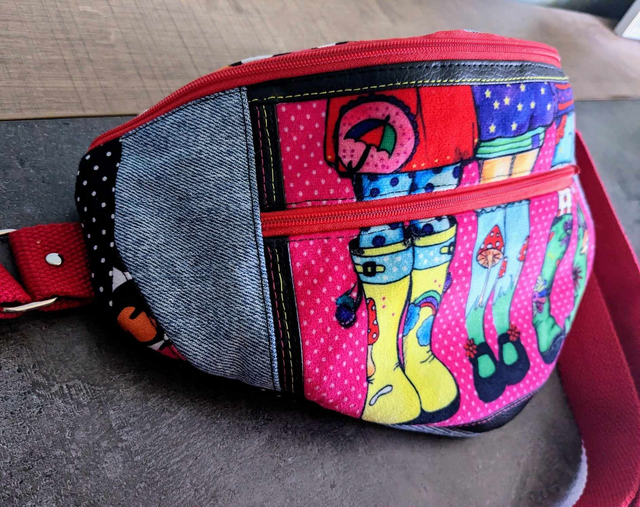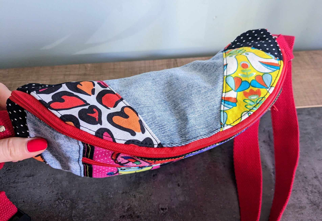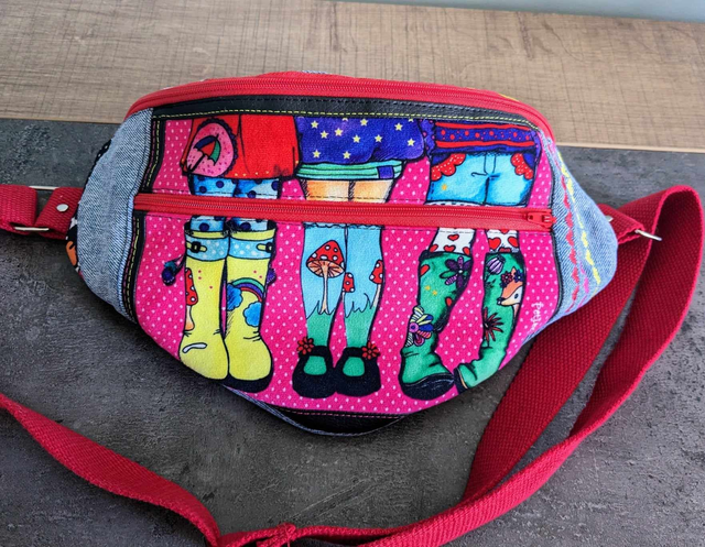 - Une poche plate située au dos de la banane lorsque la banane est portée en bandoulière.