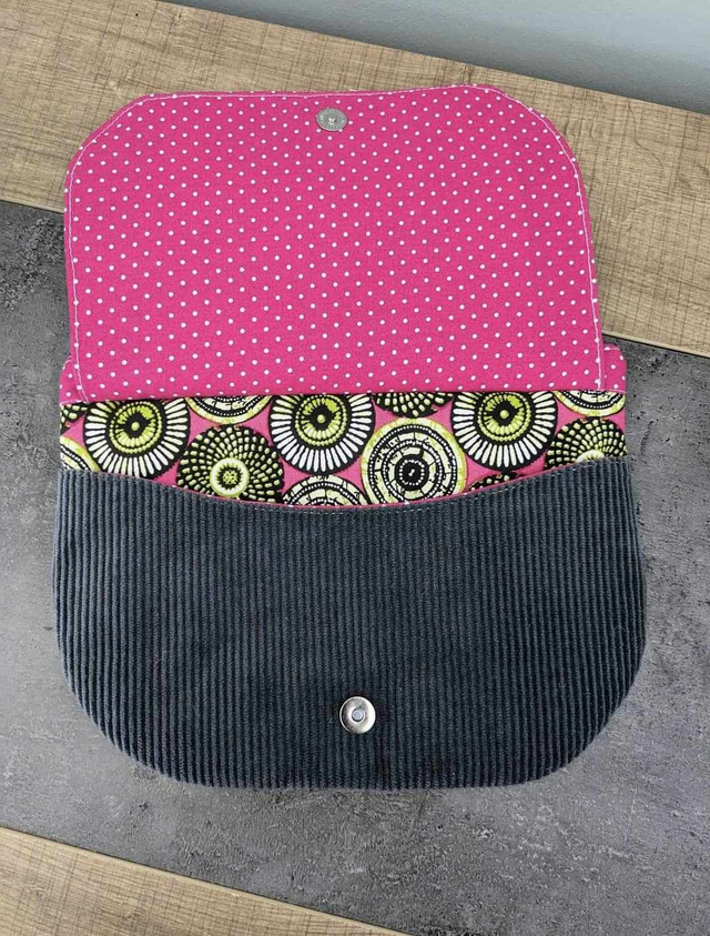 Contient une poche zippée et une poche plaquée sous le rabat